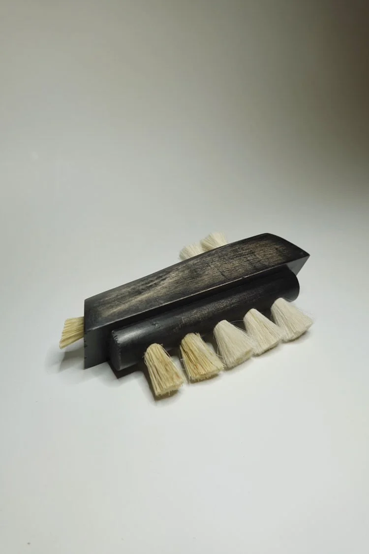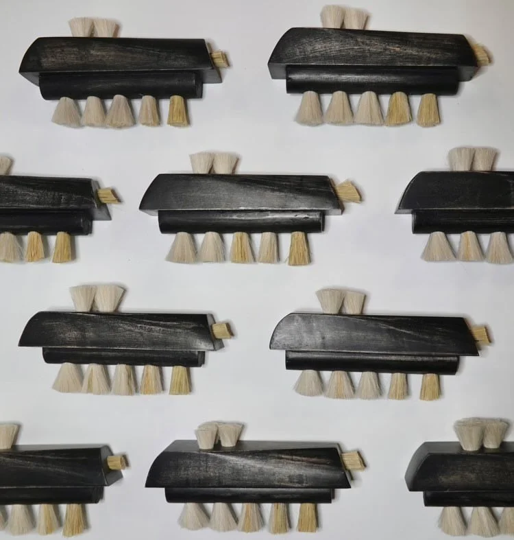 maple, india ink, liming wax, horse hair, goat hair
